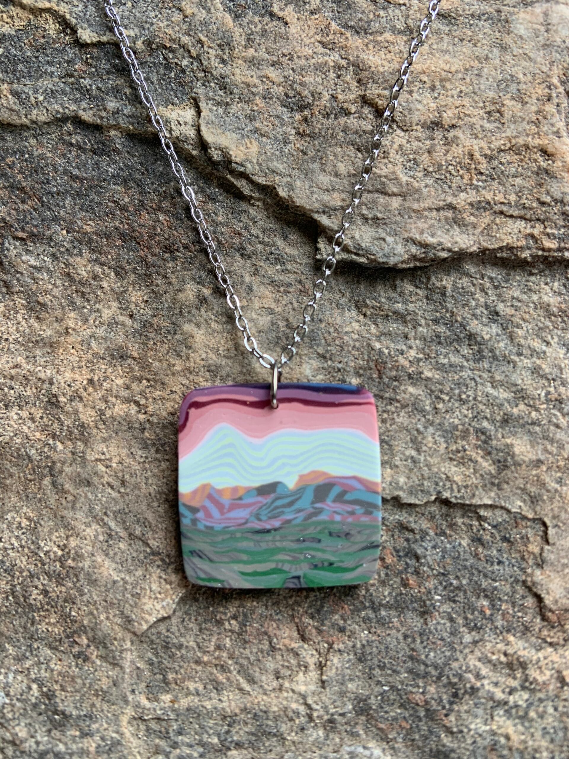 Each design of our polymer clay jewelry is created using a layering technique called canework. This process involves working three-dimensionally to produce a small brick or "loaf" which is then sliced revealing the image in the cross-section. Each slice is both an original and one of a series with variations that can differ slightly from the representative picture. All work is completely hand done by us.