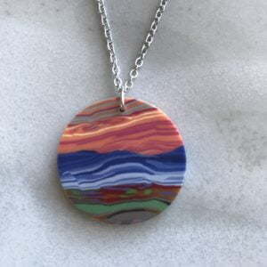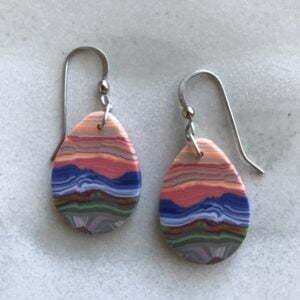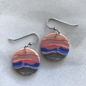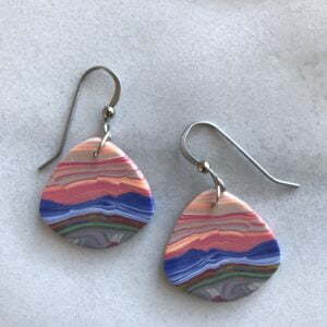 Each design of our polymer clay jewelry is created using a layering technique called canework. This process involves working three-dimensionally to produce a small brick or "loaf" which is then sliced revealing the image in the cross-section. Each slice is both an original and one of a series with variations that can differ slightly from the representative picture. All work is completely hand done by us.